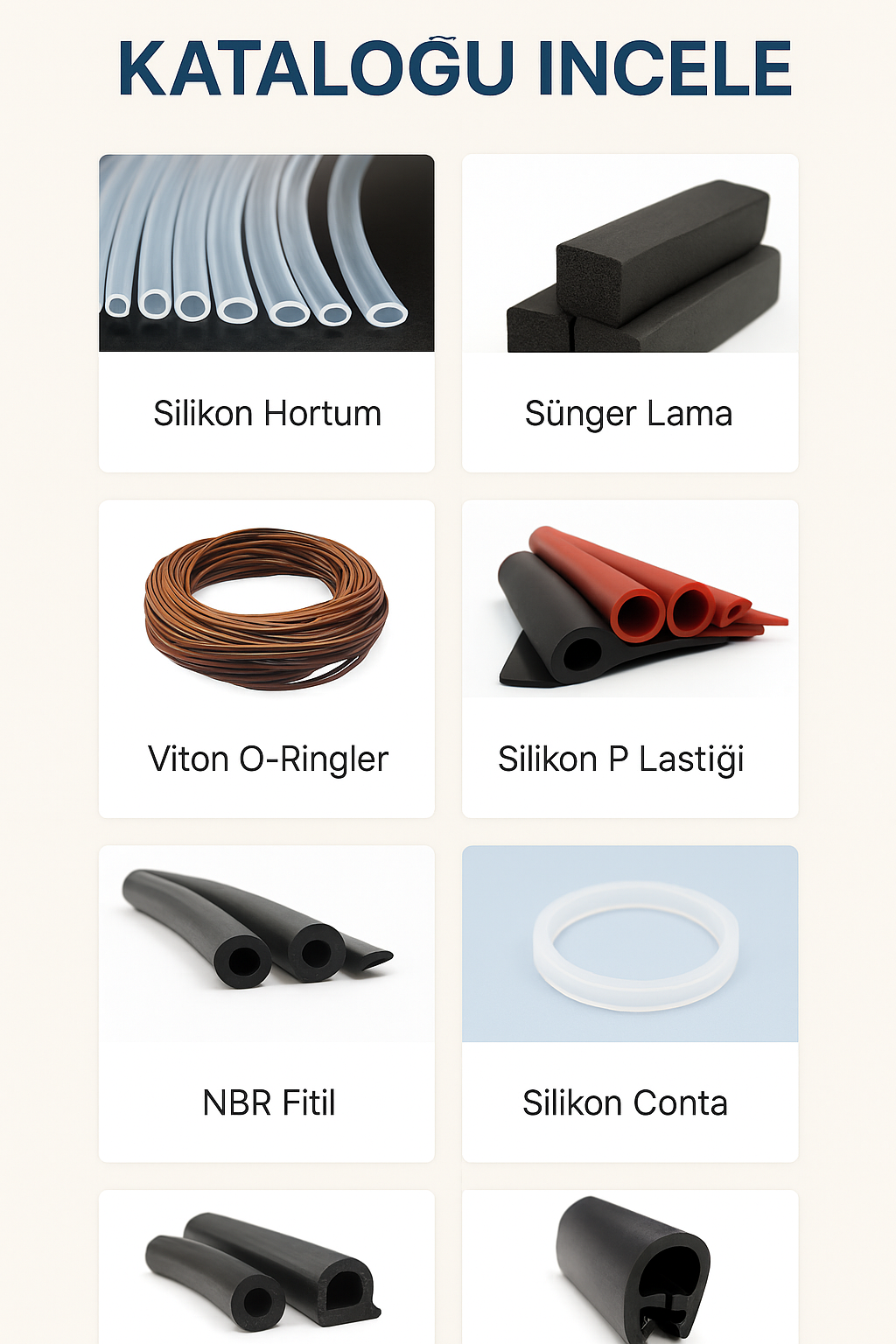 İletişimÜrünlerimizi detaylı incelemek için online kataloğumuzu keşfedin. Kauçuk çözümlerimizi sektörlere özel olarak hazırladık.